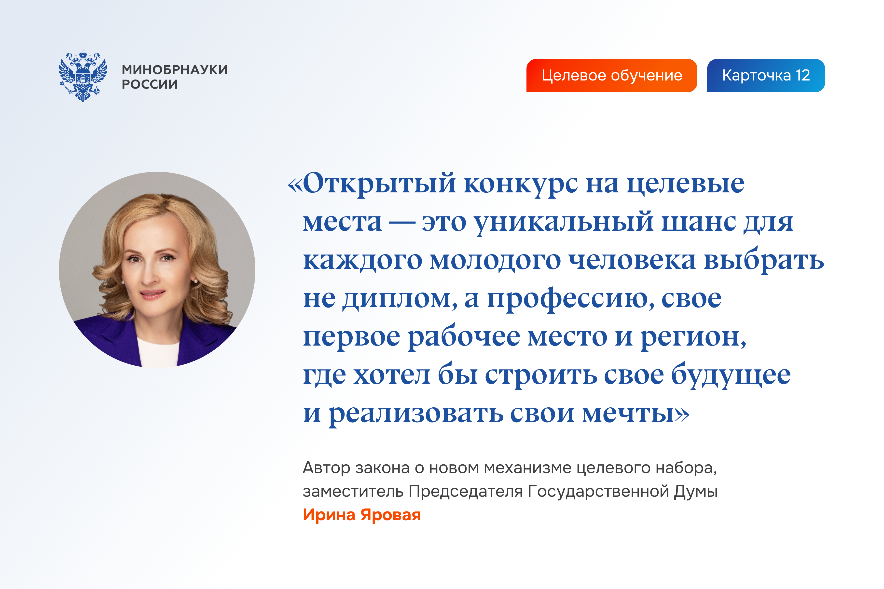 ! Конкурс на целевую квоту может быть выбран лишь один и должен совпадать с одним из ранее выбранных предложений (при заполнении заявления на прием в вуз на портале «Госуслуги»).