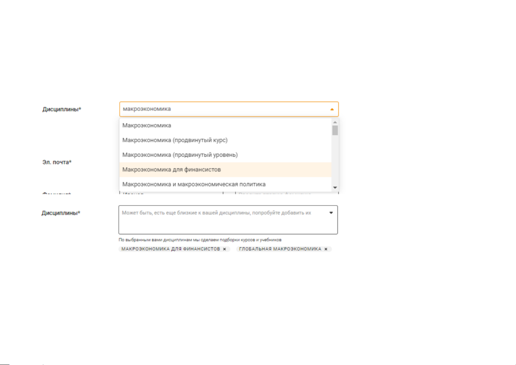 Если Вы выбрали роль Преподавателя, то поле «Дисциплина» обязательное для заполнения.