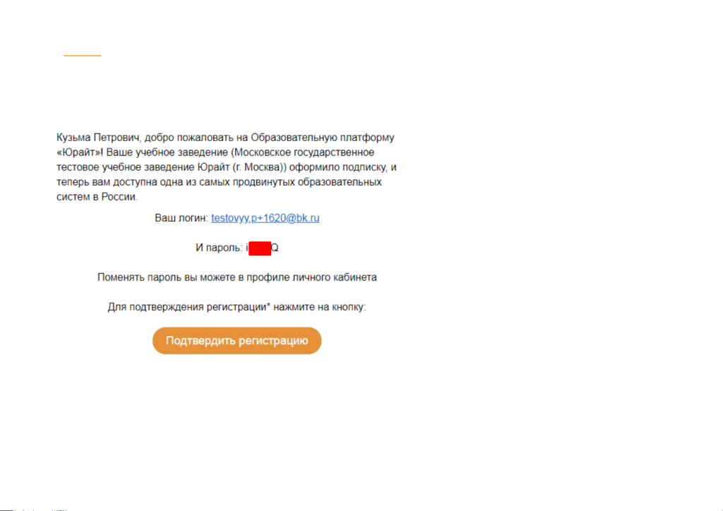 Практически мгновенно на Ваш e-mail поступает письмо от отправителя noreply@urait.ru с темой «Добро пожаловать на urait.ru»
