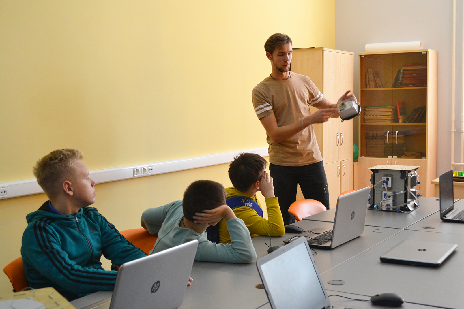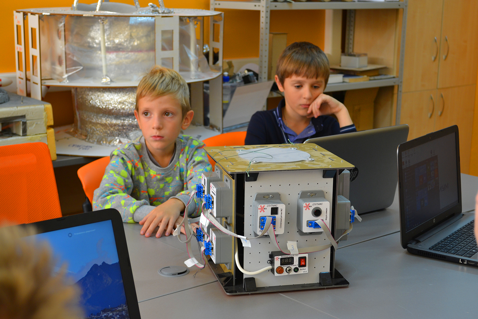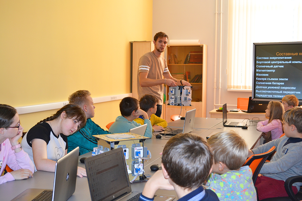 Её участники постигали секреты космонавтики и ракетостроения, знакомились с различными видами спутников и их устройством, с системами ориентации, стабилизации и передачи данных, а в завершение работы осуществили сборку модели спутника, используя конструктор orbicraft.