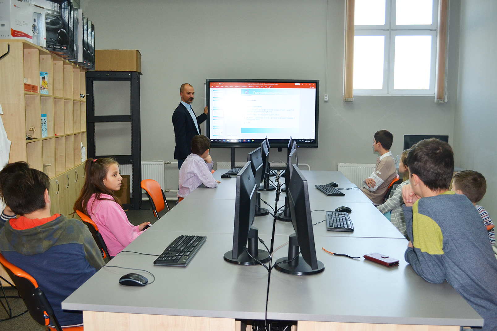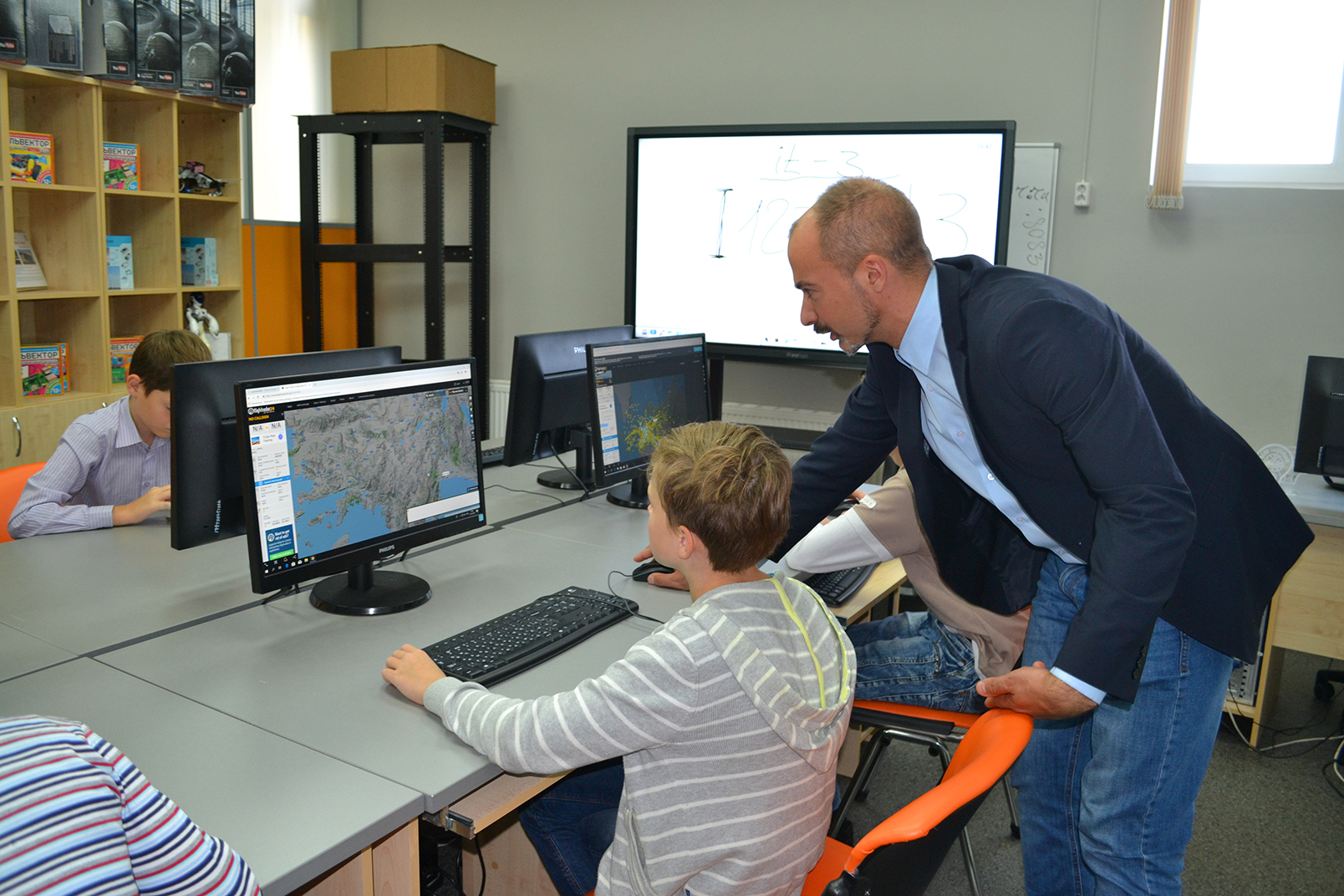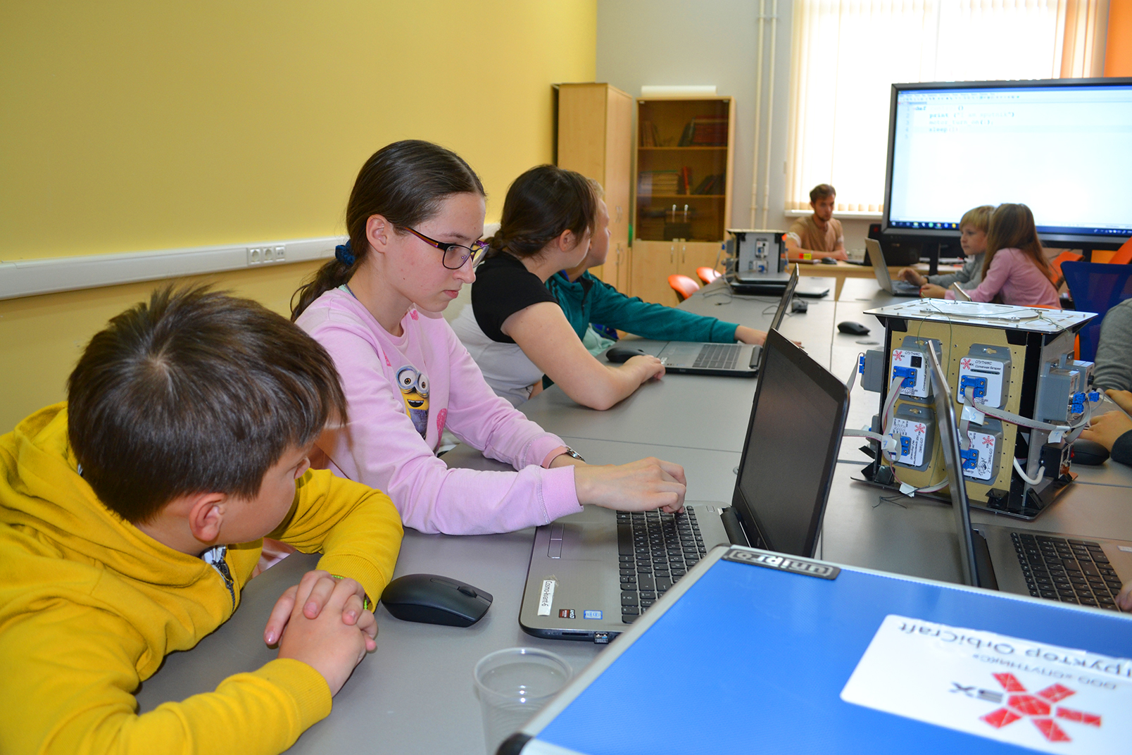 Сегодня для участников Московского областного фестиваля «Наука 0+» был организован научно-познавательный мастер-класс «Геопрограммирование траектории полёта спутника». Площадкой для мастер-класса стал IT-квантум Детского технопарка «Кванториум» Технологического университета.