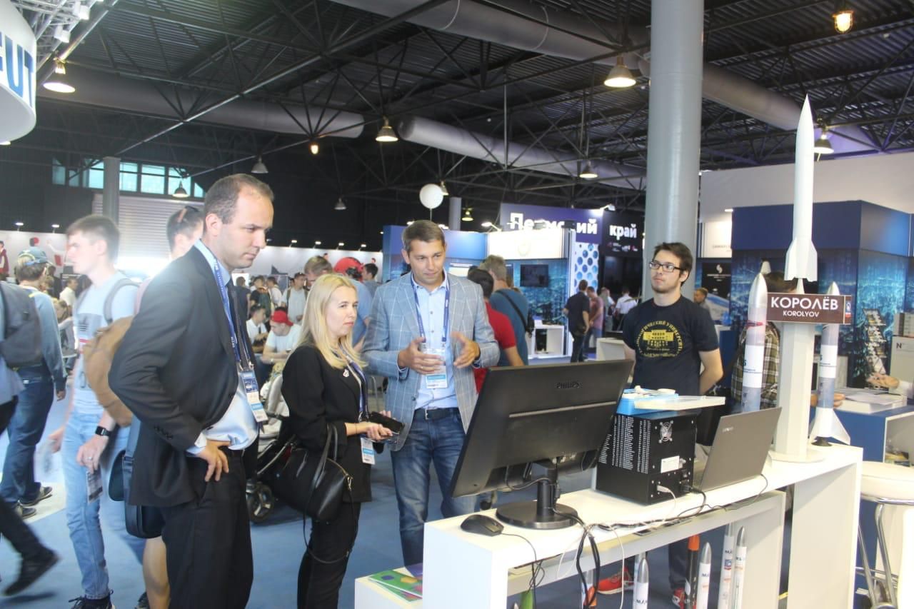 30 августа стенд Технологического университета на Международном авиационно-космическом салоне МАКС-2019 посетили начальник управления инновационной и научной политики Министерства инвестиции и инноваций Московской области Виктория Халимендик и главный аналитик отдела инновационной инфраструктуры управления инновационной и научной политики Олег Сюмко. Основную экспозицию гостям презентовал проректор по научной работе и инновационной деятельности Вячеслав Старцев.