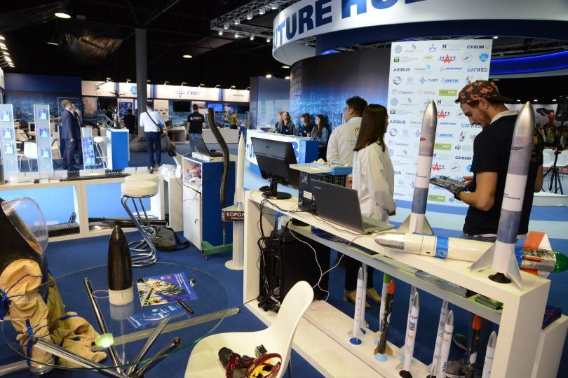 Для работы раздела «Вузовская наука и авиационно-техническое творчество молодёжи»/Future Hub создано единое информационное, тематическое и визуальное пространство, включающее в себя выставочную экспозицию с инновационными разработками студентов, молодых учёных и специалистов вузов, открытый конференц-зал для проведения мероприятий деловой программы, площадки для тренингов, семинаров, неформального делового общения, дискуссий.