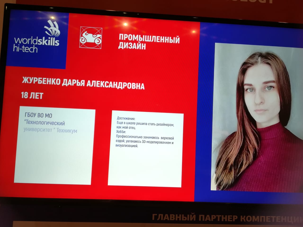 В категории 16+ участник от Техникума технологий и дизайна Технологического университета Дарья Журбенко под руководством опытного эксперта Натальи Мироновой по компетенции «Промышленный дизайн» будет соревноваться с участниками из Москвы и из корпорации Ростех.